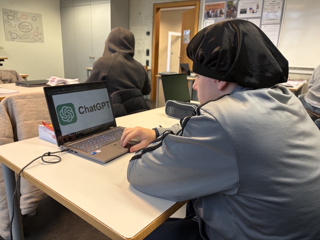 Im Unterricht fällt uns auf, wie oft KI genutzt wird. Viele lassen sich Begriffe erklären oder Zusammenfassungen erstellen. Ein Schüler erzählt uns im Gespräch, dass er ChatGPT und Perplexity täglich verwendet, vor allem, um Aufgaben schneller zu verstehen und Fehler zu vermeiden. Bei komplexeren Fächern wie Geschichte helfe KI besonders viel, erklärt er, weil man da nicht einfach raten kann wie in Mathe.